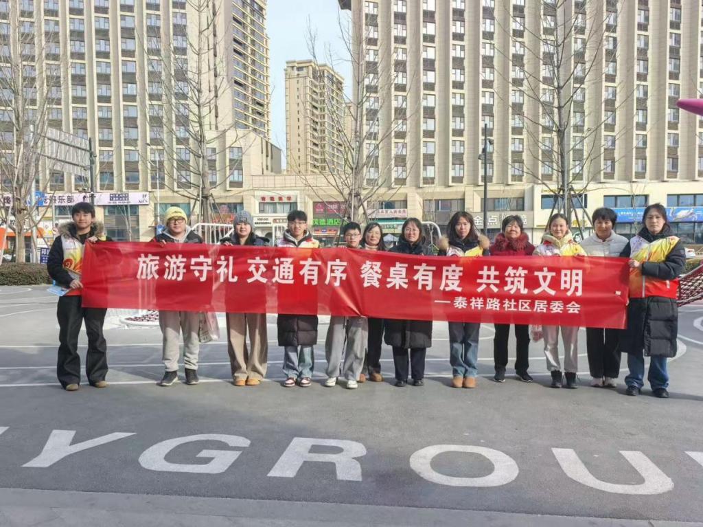“青衿筑梦・薪火传知” 实践队走进泰祥路社区,开展以 “旅游守礼 交通有序 餐桌有度 共筑文明” 为主题的寒假社会实践活动,以青春之力助力文明城市建设。