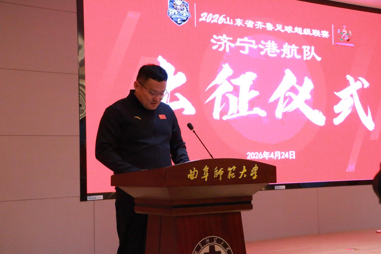 4月24日,2026山东省齐鲁足球超级联赛济宁港航队出征仪式在曲阜师范大学举行。本次仪式由8波足球比分