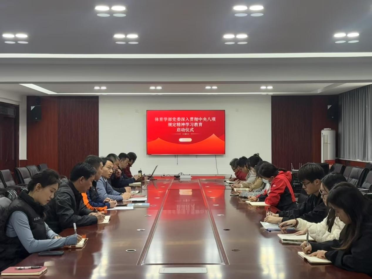会上,体育学部党委书记许怀祥传达了学校关于开展深入贯彻中央八项规定精神学习教育的相关文件和会议精神,强调了此次学习教育的重要意义。他表示,中央八项规定是长期有效的铁规矩、硬杠杠,关乎党的形象、人心向背和事业发展。开展学习教育是推动全面从严治党向纵深发展的重要举措,也是提升学部党员干部队伍作风建设水平的迫切需要。全体党员干部要提高政治站位,深刻认识学习教育的重大意义,切实把思想和行动统一到党中央决策部署上来。