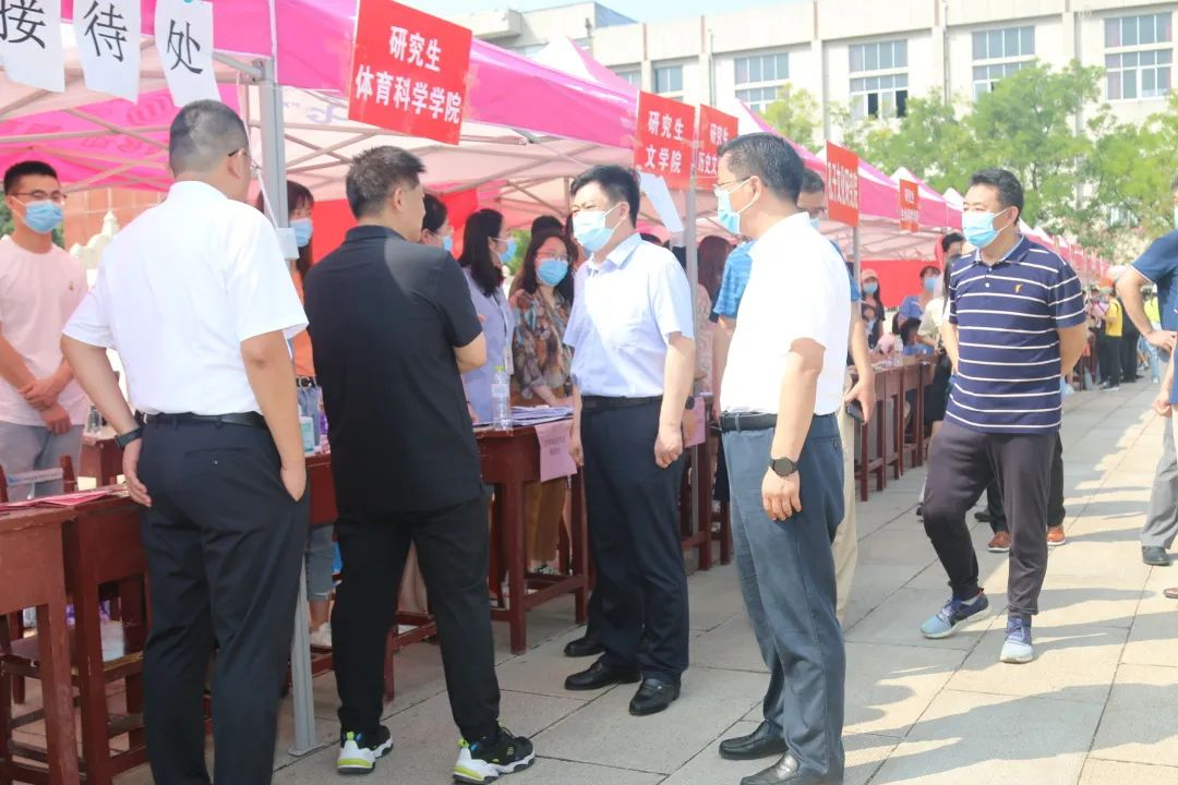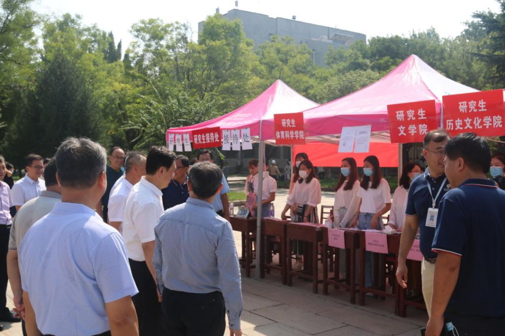 9月10号-9月12号,曲阜师范大学党委书记戚万学、校长张洪海一行来到报道现场看望新生,并亲切慰问了迎新一线的工作人员。