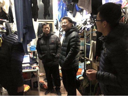 团委组织进行的宿舍违章电器突击检查活动在西三宿舍楼内进行,团委副书记梁贺涵老师和2017级辅导员李士建老师参加此次检查活动,学生会团委副书记秦栋、学生会主席王烁、学生会副主席高川、庞茂勇陪同检查。